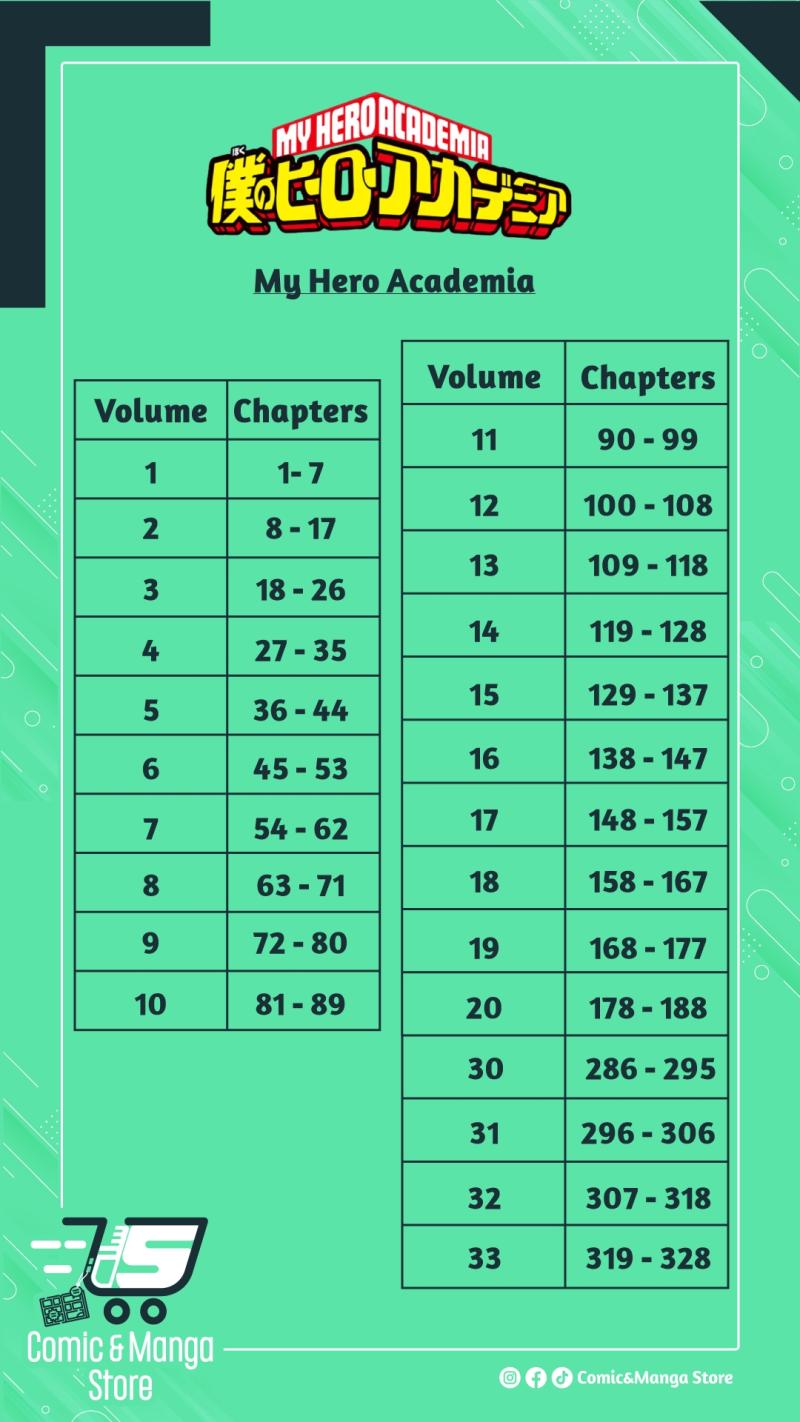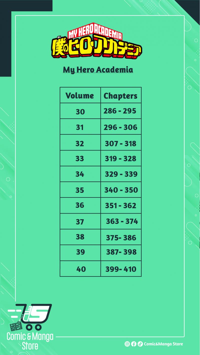 مجلد المانغا الرئيسية My Hero Academia انتهت بعد 430 فصلًا، حيث نُشر الفصل الأخير في 5 أغسطس 2024.