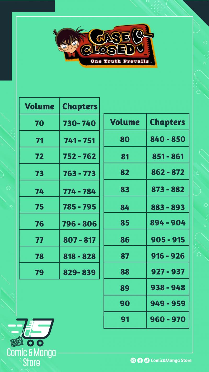 • عدد فصول مانجا المحقق كونان (Detective Conan / Case Closed) حتى عام 2025 هو حوالي 1153 فصلًا.