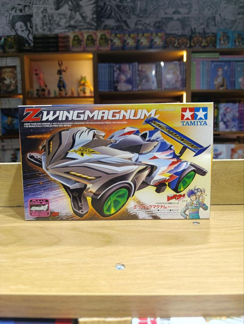 تاميا: صُنع في اليابان استكمالاً لإرث ماغنوم تُجسد مجموعة تجميع نموذج ميني 4WD البلاستيكية هذه سيارة Z Wingmagnum، سيارة السباق التي استخدمها البطل تسوباسا في الجزء الجديد من سلسلة الرسوم المتحركة اليابانية Mini 4WD "هيا بنا!! عودة المتسابقين!!". تستند هذه السيارة إلى سلسلة سيارات ميني 4WD ماغنوم الشهيرة ذات الغطاء الأمامي الكامل، وتتميز بغطاء أمامي كبير الحجم. تتضمن المجموعة ملصقات معدنية لإنشاء العلامات باللون الفضي التيتانيوم، بالإضافة إلى العناصر الحمراء والزرقاء المتناسقة التي تُذكرنا بسيارات ماغنوم. وتأتي السيارة بعجلات خضراء فلورية بخمسة أضلاع مزودة بإطارات منخفضة الارتفاع مقاس 26 مم. هيكل AR صُمم هيكل AR ليوفر للسائق المتانة وإمكانية التخصيص وسهولة الصيانة، وهي جميعها عناصر أساسية لنجاح سيارة سباق ميني 4WD. يسمح شكله الانسيابي بمرور الهواء بسلاسة عبر الهيكل الداخلي أثناء تشغيل السيارة، مما يؤدي وظيفة تبريد البطاريات والمحرك وإطالة عمرها. تم دمج فتحات التهوية في الهيكل الخارجي والداخلي لتحقيق الأداء الأمثل. يتميز هيكل السباق عالي السرعة هذا بمحامل بلاستيكية منخفضة الاحتكاك لضمان الحد الأدنى من فقدان الطاقة من المحرك إلى العجلات. يمكن إزالة اللوحة السفلية والمشتت الهوائي من النموذج دون الحاجة إلى فك الهيكل الخارجي، كما تم تركيب قضيب انزلاق خلفي منخفض الاحتكاك لتقليل فقدان الوقت على المنحدرات الصعبة، والحفاظ على ثبات السيارة على المسار الصحيح. يتميز بنسبة تروس 3.5:1.