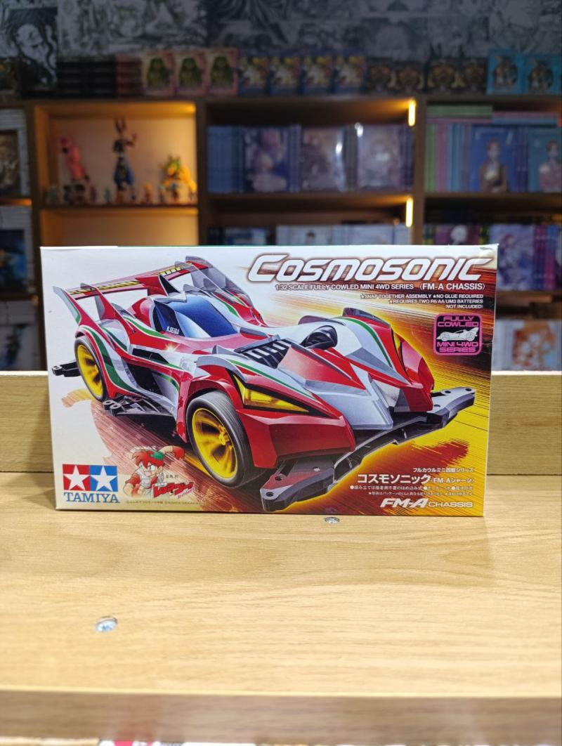 تاميا: صُنع في اليابان انطلق نحو النجوم! تُتيح لك هذه المجموعة تجميع سيارة Cosmosonic، وهي سيارة ميني رباعية الدفع سريعة، تتميز بهيكل انسيابي وجناح خلفي فريد، مستوحاة من مجموعة سيارات Sonic Mini 4WD السابقة. تعتمد السيارة على هيكل FM-A ذي المحرك الأمامي، مع إطارات صغيرة القطر ومنخفضة الارتفاع وعجلات صفراء ذات أضلاع على شكل حرف A، مما يُضفي لمسة جمالية على الأجزاء الحمراء الرئيسية للهيكل المصنوعة باستخدام ملصقات معدنية. ستكون السيارة مألوفة لقراء سلسلة القصص المصورة Mini 4WD "Let's & Go!! Return Racers!!" حيث يقودها البطل ريتسو سيبا. ★ يتميز هيكل Cosmosonic الانسيابي بتصميمات مستوحاة من سيارات Sonic Mini 4WD السابقة. يمكنك طلاؤه باللون الأبيض النقي TS-26 حسب الرغبة. ★ اللون الأسود هو اللون المُختار لهيكل FM-A وأجزائه A في هذا النموذج. العجلات ذات الأضلاع على شكل حرف A مصبوبة باللون الأصفر لإضفاء لمسة لونية مميزة. ★ لمَ لا تُجرب سيارة Cosmosonic مع سيارات أخرى من فئة FM-A، مثل Great Magnum R الظاهرة خلفها هنا، بالإضافة إلى سيارة من سلسلة "Let's & Go!!"؟ FM-A: هيكل محرك أمامي انسيابي يتميز هيكل FM-A بمحرك أمامي ذي تصميم انسيابي متطور، وبفضل مركز ثقله الأمامي، يُناسب مختلف أنواع الحلبات، بما فيها تلك التي تشهد تغيرات متكررة في الارتفاع. وهو مُجهز بقضيب انزلاق أمامي منخفض الاحتكاك وأربع بكرات، بما في ذلك بكرات خلفية عالية الثبات بسماكة 8 مم. يُتيح الجزء السفلي من الهيكل سهولة الوصول إلى المحرك وإجراء تعديلات سريعة على الإعدادات. كما تُتيح الدعامات الجانبية المُستوحاة من تصميم الطائرات تركيب مجموعة من قطع الترقية. الهيكل مصنوع من مادة ABS المتينة، مع قطع A منخفضة الاحتكاك، مثل اللوحة السفلية، وكلها باللون الأسود. يأتي هذا الطراز مزودًا بتروس بنسبة 3.5:1. التغليف المواصفات ★ الطول: ١٥٦ مم ★ العرض: ٩٧ مم ★ الارتفاع: ٤٣ مم ★ يشمل محركًا ★ سهل التركيب المكونات المطلوبة بشكل منفصل ★ بطاريات R6/AA/UM3 (عدد ٢)